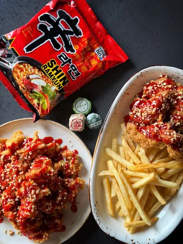 Корейские Чикенсы представляют собой хрустящее куриное филе, обжаренное в золотистой панировке с добавлением тщательно подобранных специй, что придает блюду уникальный вкус. Подаются в аппетитном соусе "янмён", который сочетает в себе сладкие и острые нотки, создавая идеальный баланс для истинных гурманов. Это блюдо станет отличным выбором для любителей корейского стритфуда и ценителей качественной кухни. Состав: куриное филе в кляре, масло растительное, арахис, соус янмён с арахисом